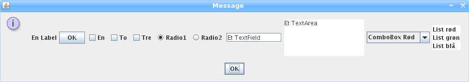 Når man skal lave en grafisk brugergrænseflade (eng.: GUI, graphical user interface), gøres det oftest ved at anvende standardkomponenter. Vi vil starte med at se på, hvordan det gøres i praksis med et værktøj, og derefter studere den kode, der kommer ud af det.