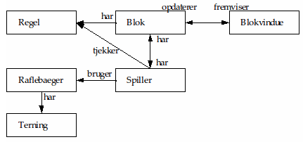 Når spilleren tjekker regler, sker det gennem blok-objektet. Man kan forestille sig, at spilleren løber gennem alle blokkens regler og ser, om der er nogle, der passer, som han ikke har brugt endnu. Tjek af regler er altså ikke en har-relation, for spilleren har ikke en variabel, der refererer til reglerne.