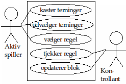 Visse steder er der mange slags objekter, der kan indgå i samme rolle. Det gælder for eksempel Spiller i diagrammet ovenfor. Så kan man tegne et separat diagram, der viser rollerne.