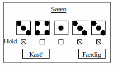 Man kan holde på terningerne ved at klikke på afkrydsningsfelterne.