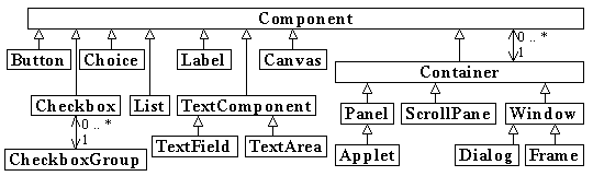 Bemærk, at Container selv arver fra Component, så en Container kan i sig selv bruges som en komponent. Det er relevant for Panel og ScrollPane, der er beregnet til at blive placeret inden i andre containere.