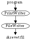 ud.println(322);Når vi skriver til PrintWriter-objektet, sender det teksten videre til FileWriter-objektet, der skriver teksten i filen.