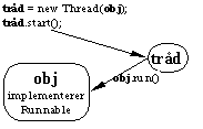 tråd.start(); // her kører den oprindelige tråd videre, mens den nye tråd kører i obj.run() // ...