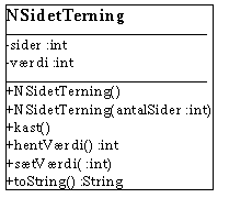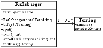Definition af klasserne Boks, Terning, Raflebæger, Person og Konto