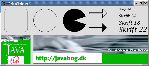 Her følger et eksempel, der viser mange af mulighederne, der er med Graphics-objektet.