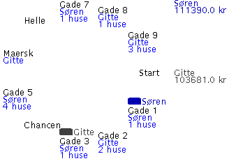 }En grund skal også have tegnet ejeren nedenunder, så den skal have en anderledes tegn(). Definér tegn() i Grund2. En gade skal også vise antallet af huse. Definér også tegn() i Gade2.