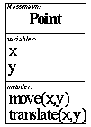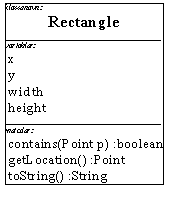 Øverst er klassens navn, dernæst data og nederst metoderne.