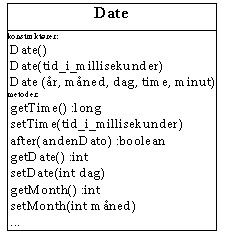 opretter et Date-objekt med det givne tidspunkt. Bemærk, at år regnes fra år 1900 (1997 svarer til år=97) og måned regnes fra 0 (januar svarer til måned=0).