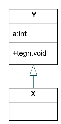 Er-en-relationenAt X er-en Y betyder: i klassen X er defineret, at X arver fra klassen Y. Et X-objekt indeholder derfor (mindst) alle de metoder og variabler, som et Y-objekt indeholder.