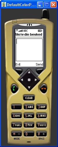 Når man kører et eksempel, dukker en emulator op med et billede af den pågældende telefon. Man kan navigere enten ved at klikke på telefonens knapper eller med piletasterne, F1, F2, Home og End (ESC afslutter emulatoren).