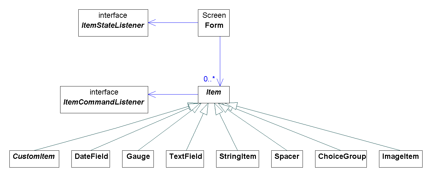 De muligheder, man har for at lave brugergrænseflader til en midlet, er defineret i pakken javax.microedition.lcdui.