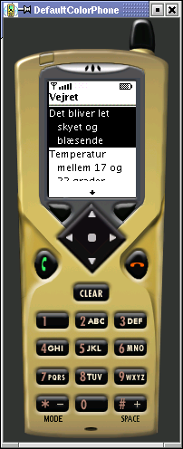 en midlet, der viser en (fiktiv) vejrudsigt:
